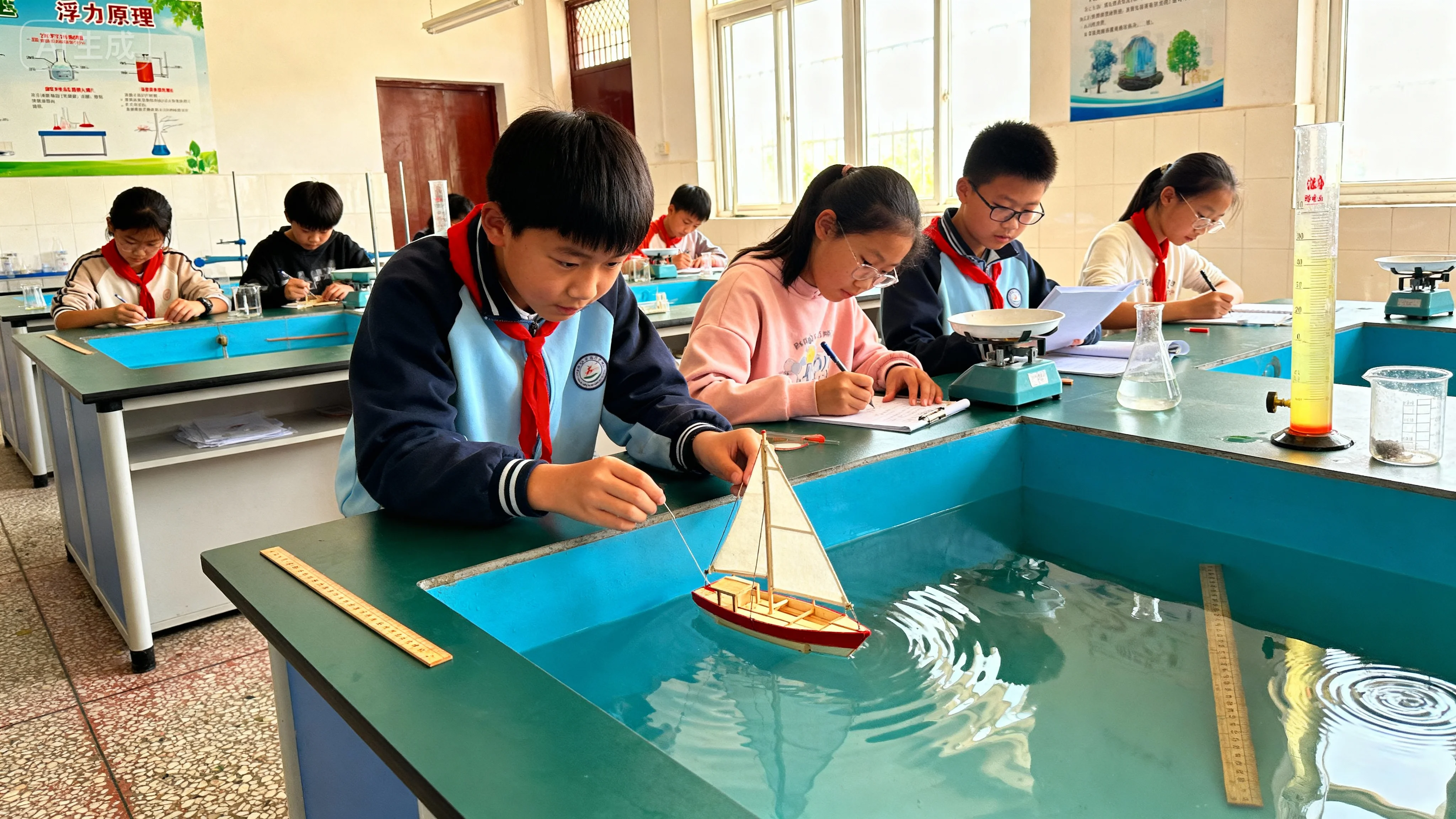 打破学科壁垒,重构学习场景。活动将数理工程、语言文化、科学生态、艺术创造等学科有机融入主题实践。在工程数据实验室,学生运用数学思维进行结构规划与成本精算;在“双语互动空间站”,学生通过角色扮演,深化语言应用与文化理解;在“生态探索实验室”,学生通过动手制作、反复测试,验证浮力原理;“文明研习社”的学生们深入挖掘故事内核。该项目构建起多维立体的学习场域,实现知识从书本到实践的创造性转化。